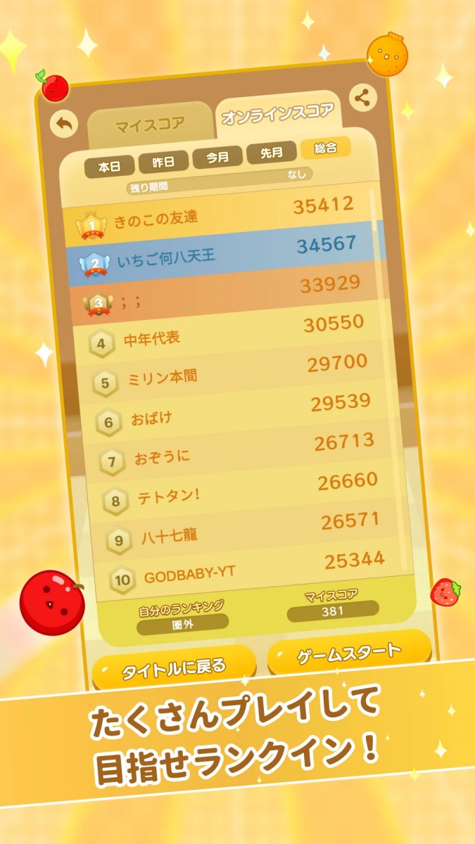 Sounds simple, doesn't it? But the essence of "スイカゲーム" lies in the precise placement of the fruit drops, lest they roll or collide, causing the stack to become unstable. Once the fruit stack exceeds the upper edge of the game frame, the game ends immediately.