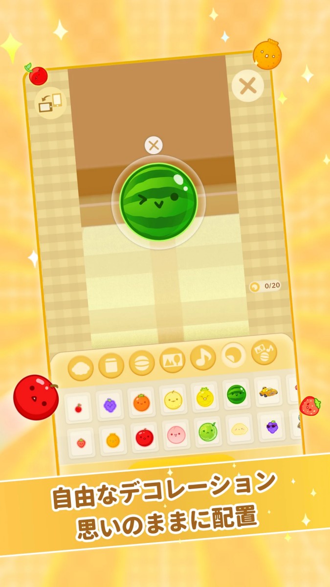 "スイカゲーム" released by Aladdin X, is a casual puzzle game that looks incredibly cute on the surface, but is actually incredibly challenging. Don't be fooled by the adorable fruits; while it may seem easy, it can easily get you hooked, chasing higher scores and bigger "watermelons."